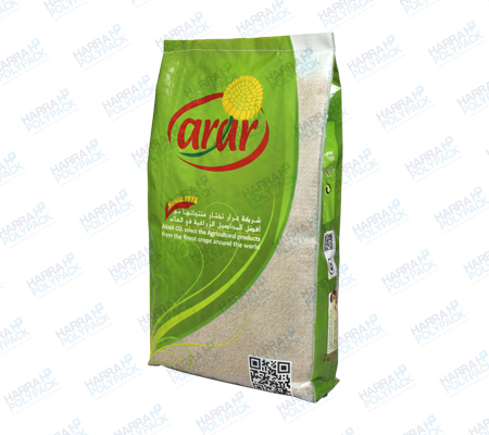 Biaxially Oriented Polypropylene (BOPP) bags are produced by laminating a reverse printed film to a woven fabric which is then manufactured into a bag. The film is stretched in both the machine direction (MD) and across machine direction (AMD). The result is a material with superior strength at low gauges, flatness, clarity, and excellent printability. This construction is in high demand due to its strength and superior picture-like print quality. Printing is achieved by applying the inks directly onto the film which is adhered to a woven fabric using a lamination coating. BOPP film is reverse printed, resulting in a protected interior print (between the film and laminate/woven fabric) which will not scratch or be easily damaged during normal use. The BOPP bag’s appeal includes dimensional stability, maximum water resistance, and high impact graphics that improve marketability, as well as optional anti-skid features. A key feature is that the same packaging equipment used for multiwall paper bags can be used to pack open mouthed BOPP bags.